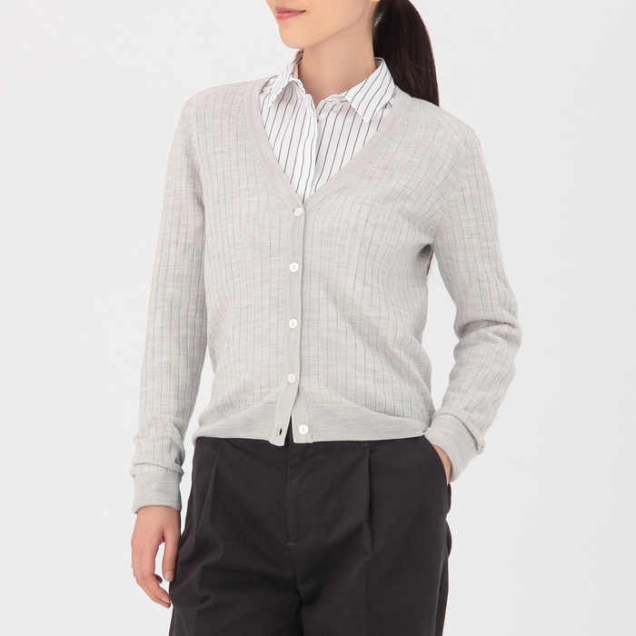 Muji 울 실크 와이드 리브 가디건 부인S라이트 그레이SALE