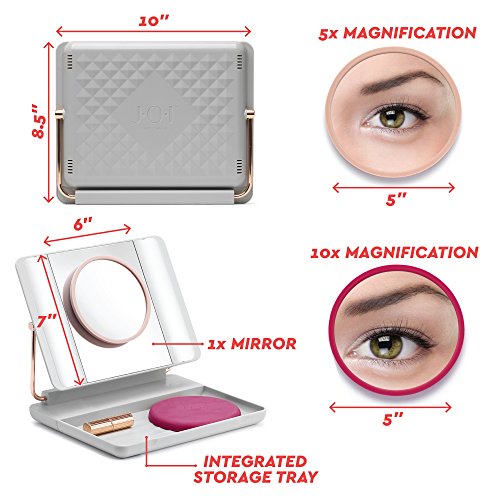 - 1X | 5X | 10X Magnifications & Dimmer: The Spotlite HD has touch-sensitive dimmer switch for custom lighting and two detachable, interchangeable 5x and 10x magnified mirrors - perfect for close-ups, eyebrow grooming, or false eyelash application