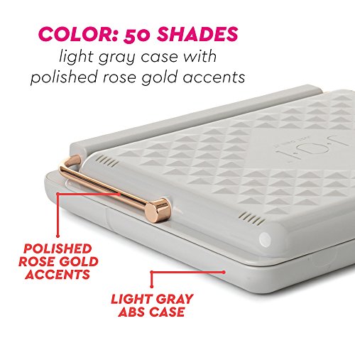 - The Ultimate Professional Mirror: Your Spotlite HD Mirror in shade 50 Shades (light grey case with polished rose gold accents) comes with powerful rechargeable lithium batteries, a USB charging cord, cleaning cloth, and neoprene storage bag