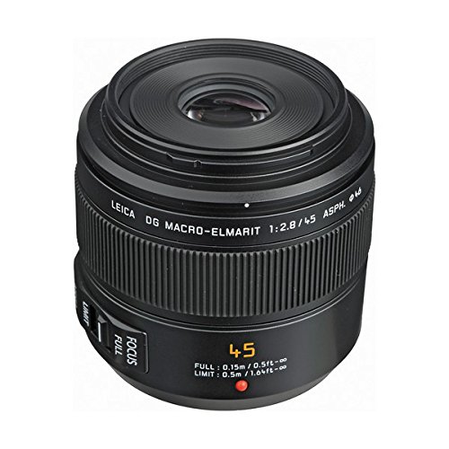 PANASONIC LUMIX G LEICA DG MACRO-ELMAR LENS, 45MM, F2.8 ASPH., PROFESSIONAL MIRRORLESS MICRO FOUR THIRDS, MEGA OPTICAL I.S., H-ES045 (USA BLACK)