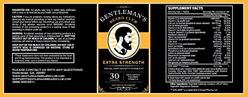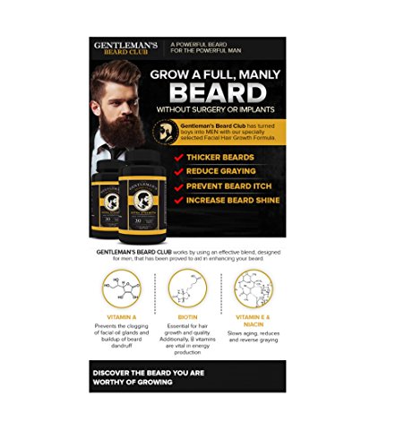 -. Binding : Health and Beauty -. Brand : Gentleman's Beard Club -. Feature : Beard Growth Supplement: is an easy, once a day, vitamin that addresses multiple problem areas. It can boost or fill in a new beard hair and improve skin hydration. / Nourish And Strengthen: Pr nutrients targeted to the hair follicle. Things creates stronger, healthy beard hair that is less likely to break off. / Helps Fill Thin Spots: Naturally stimulates dormant beard hair and unclogs pours to allow new beard hair to grow. / Beard Itch Aid: Healthy, hydrated skin is less likely to be irritated by the itch or your new facial hair growth. -. IsAdultProduct : 0 -. Label : P.R.Ivate Label Nutraceuticals -. Manufacturer : P.R.Ivate Label Nutraceuticals -. MPN : GBC 1 -. PackageQuantity : 1 -. PartNumber : GBC 1 -. ProductGroup : Health and Beauty -. ProductTypeName : HEALTH_PERSONAL_CARE -. Publisher : P.R.Ivate Label Nutraceuticals -. Studio : P.R.Ivate Label Nutraceuticals -. Title : Gentleman's Beard Club Facial Hair Growth Formula Beard Growth Supplement Vitamin Grow a Fuller Thicker Beard 30 Tablet