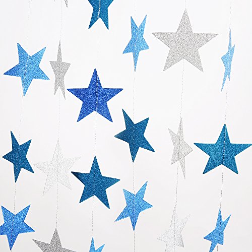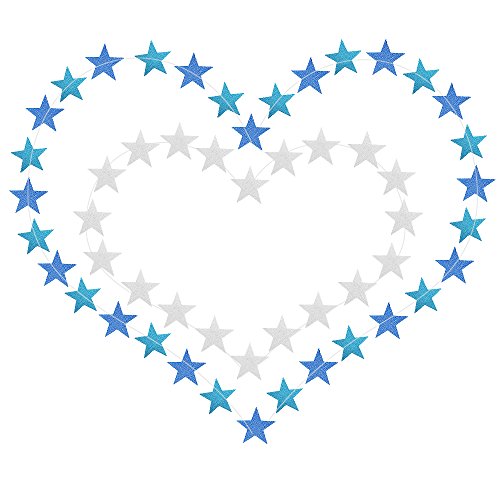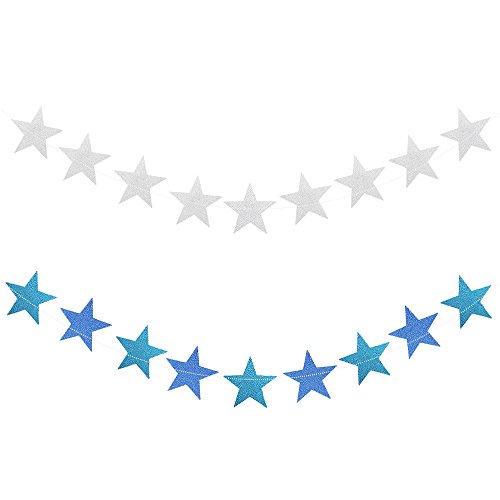 2 Pack Sparkling Star Paper Garland Bunting Banner Hanging Décor for Christmas Wedding Birthday Party Baby Shower(Blue+Silver,12ft ,35pcs)