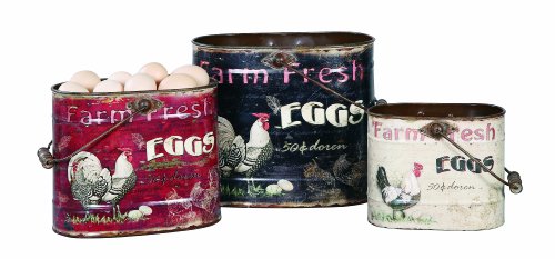 Creative Co-Op Decorative Rooster and Eggs Tin Bucket Set