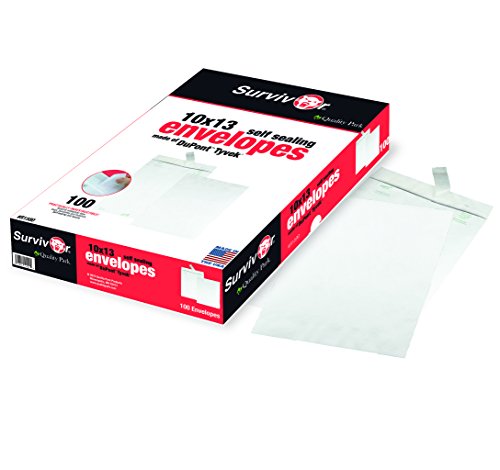Quality Park Tyvek Open End 10 x 13 Inch White Envelopes 100 Count (R1580)