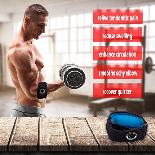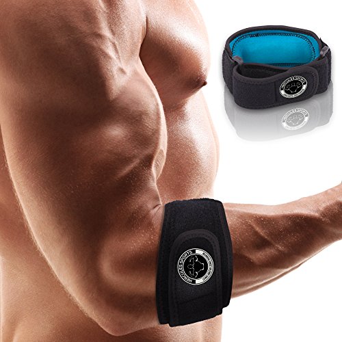 Hercules Premium Elbow Brace BONUS Wrist Sweatband Golfer’s & Tennis Elbow Pain Relief System with Compression Pad for Tendonitis, Repetitive Stress Injury & Arthritis - Sports Armband with