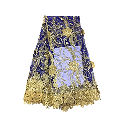 LaceQin 5 yards 3D three-dimensional embroidery France Nigeria lace Africa network embroidery hot drilling fabric(Blue)