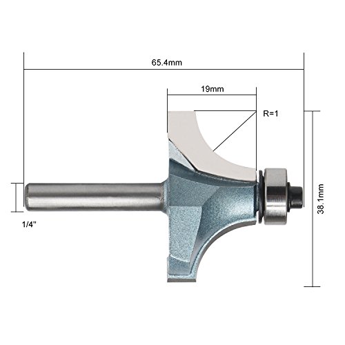 EnPoint Woodworking Solid Carbide Top Ball Bearing Beading Router Bit 1/4" Shank 1" ARC Cutter 3/4" Cut Height Industrial Quality Rounding Over Fillet Ball Bearing Guide Edging Router Bit