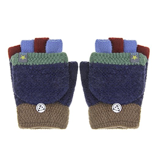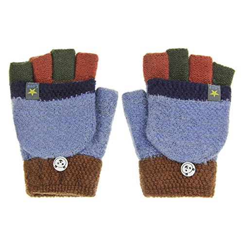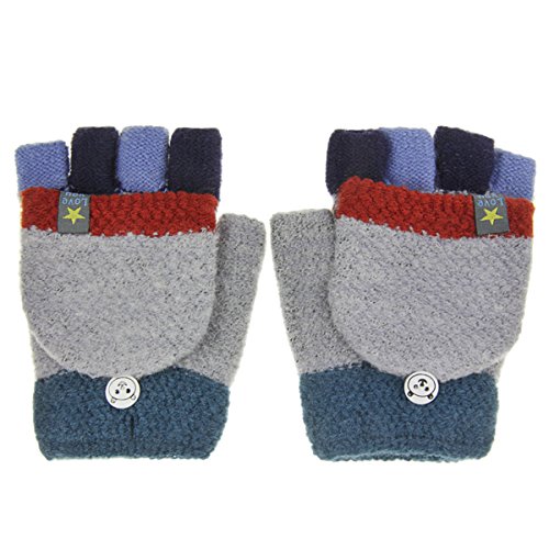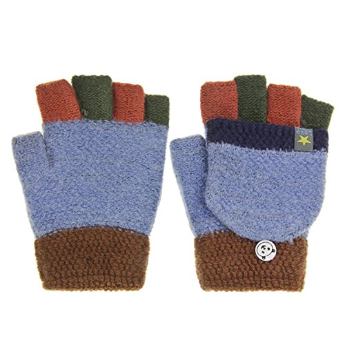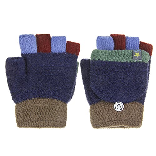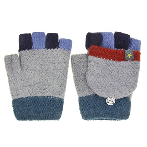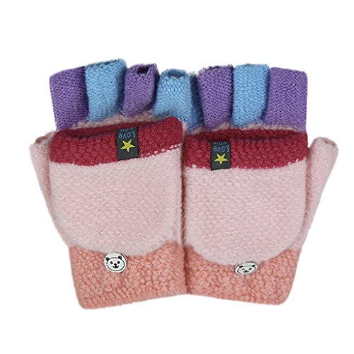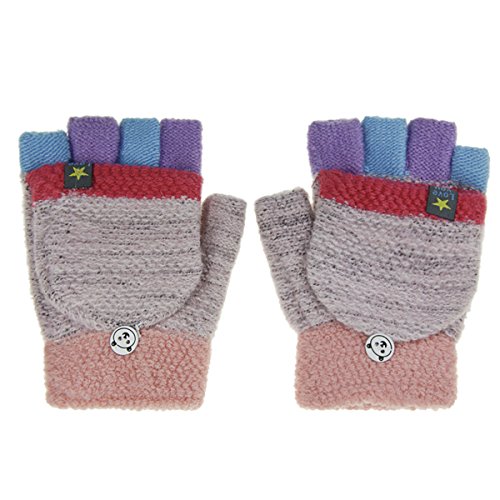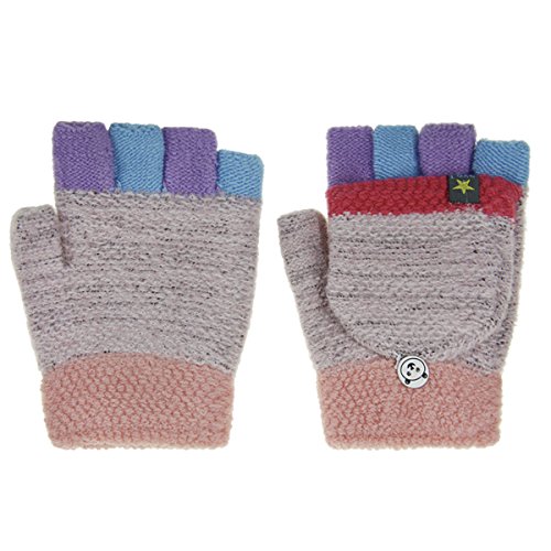 Kids Cute Warm Convertible Glove Flip Top Fingerless Gloves with Mitten Cover Xmas Gift for Boy Girl