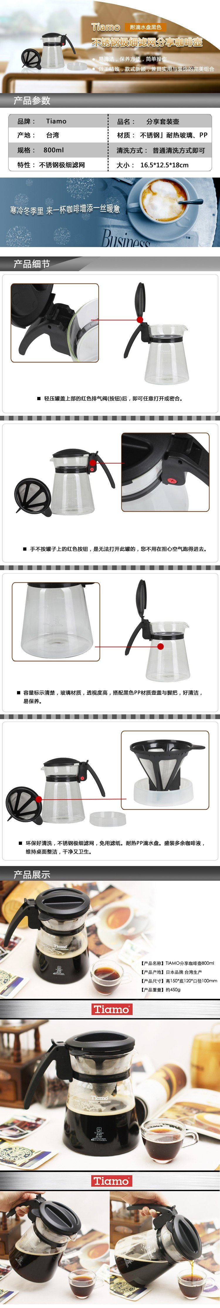 TIAMO HG1966 咖啡过滤壶套装 咖啡壶 分享壶 赠送滴水盘 800ml