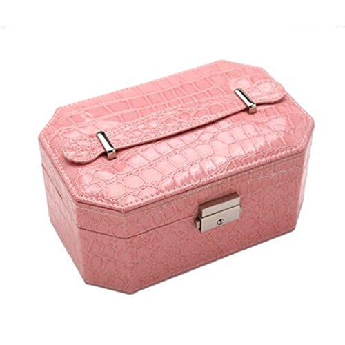 -. Feature : MINI TRAVEL CASE ATTATCHED -- The mini travel jewelry box is specially designed for journey, portable and space saving / PRACTICAL GIFT CHOICE -- Multi-functional jewelry case, suits for necklaces, bracelets, watches, earrings, ear studs, hairpins, cufflinks, brooches and other jewelry, nice gift idea / SECURE--Lock with a key ;Large mirror on top lid;removable mini travel jewelry box (shown at rear left of the jewelry box) that holds even more rings / PORTABLE-- The sturdy top handle make it easy to carry this case wherever you go. This is a great toiletry bag, makeup cosmetic bag, travel bag, also can be used as a camera bag. / HIGH QUALITY: Easy to clean oxford fabric material. Padded inner layer protects against vibration breakage. Durable design with water proof, shake proof, anti-wear and spill-proof interiors for long use.
