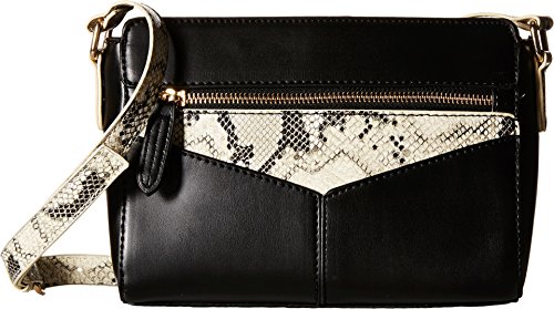 Top zip closure. Exterior features snakeskin-embossed accent panels, zip pocket at front, brand plaque at back, and hardware accents. Adjustable crossbody strap. Flat base. Lined interior flaunts organizational slip pocket. Imported.