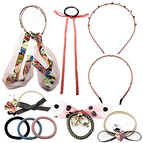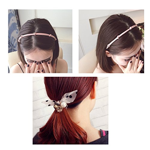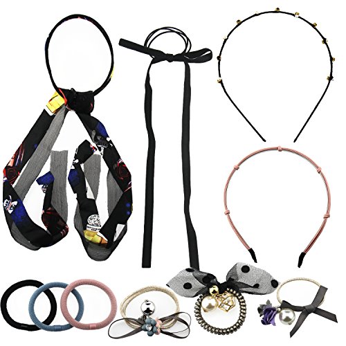 Binding : Apparel Product Description Features: Universal ponytail hair bands,includes different hair elastics,enough for your spare or replacement.The elastic hair bands is good for medium and thick hair. Elastic hair tie,put on and remove easily, just twist these elastic bands around your hair to make a elegant ponytail. Good hair adornment,easy attachment to hair.Handmade fashion hair accessory can make a unique and beautiful look. One headband with soft steel wire,you can DIY different shapes.