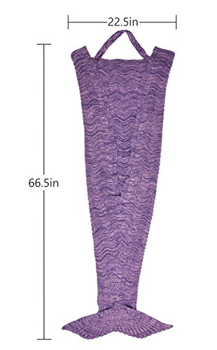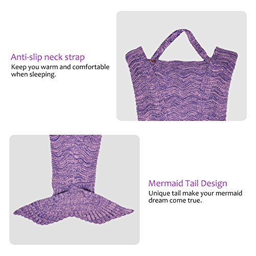 ♥COMFORTABLE DESIGN: Premium adult hand crocheted mermaid tail knitted blanket with anti-slip neck strap made of acrylic fibers provide you a comfortable and warm when sleeping in it.