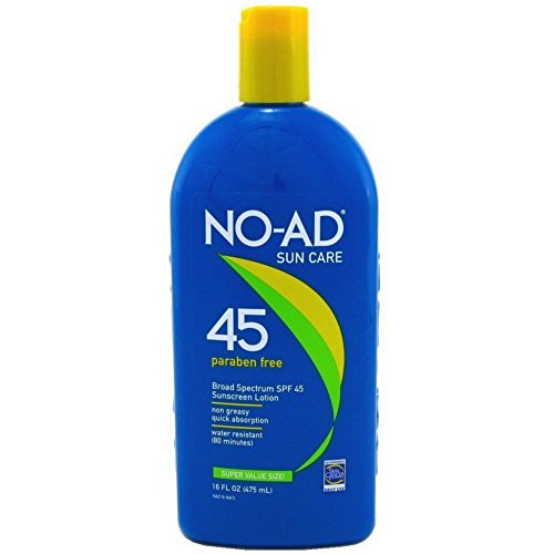 Block the Sun No-AD Sunblock Lotion SPF 45 is your bottle of powerful protection from the harmful rays of sun. This formula combines avobenzone with aloe and Vitamin E to protect your skin from a broad spectrum of UVA/UVB. Plus this sunblock lotion is also water resistant, lasting for up to 80 minutes, so you can happily participate in water sports in summer. - Protects from broad spectrum of UVA/UVB rays - Water resistant formula - Enriched with aloe and Vitamin E No-AD Sunblock Lotion SPF 45 is a non-greasy formula that's also sweat resistant to give you better protection outdoors. Just For You: All skin types A Closer Look: No-AD Sunblock Lotion SPF 45 is recommended by Skin Cancer Foundation. This fast drying and lightweight lotion also contains natural skin conditioners that prevent skin from drying and help keep it soft, smooth and protected. Get Started: Apply liberally 15 minutes before sun exposure. Reapply after 80 minutes of swimming or sweating, immediately after towel drying, or at least every 2 hours.Feature