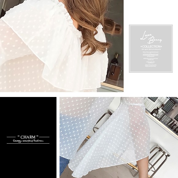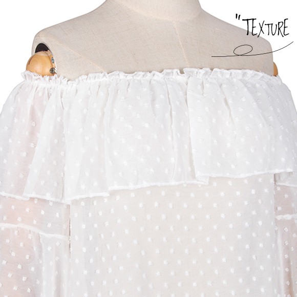 流行のドット柄とオフショルでトレンド感満載のアイテムです♪