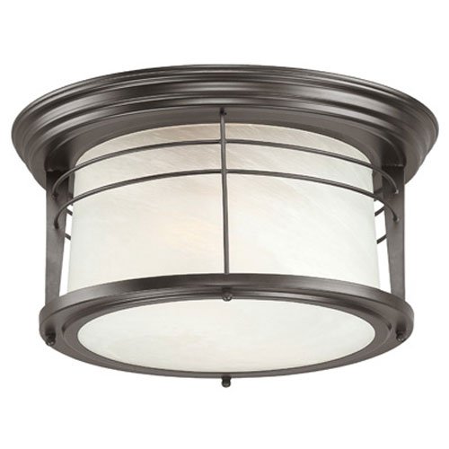 Westinghouse 6674600 Senecaville Two-Light Exterior Flush-Mount Fixture, Weathered Bronze Finish on Steel with White Alabaster Glass