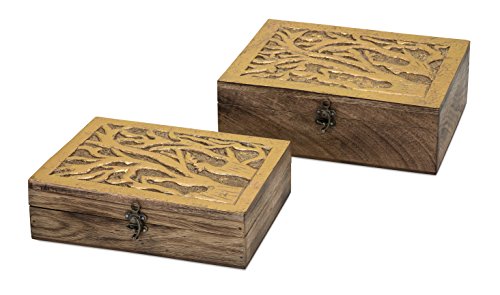 - Set of two mango wood boxes featuring an organic carved tree of knowledge design