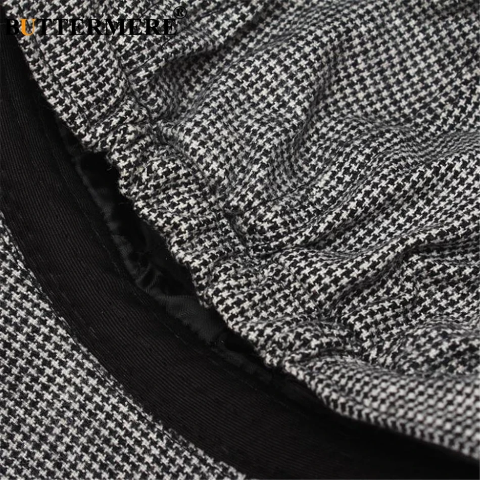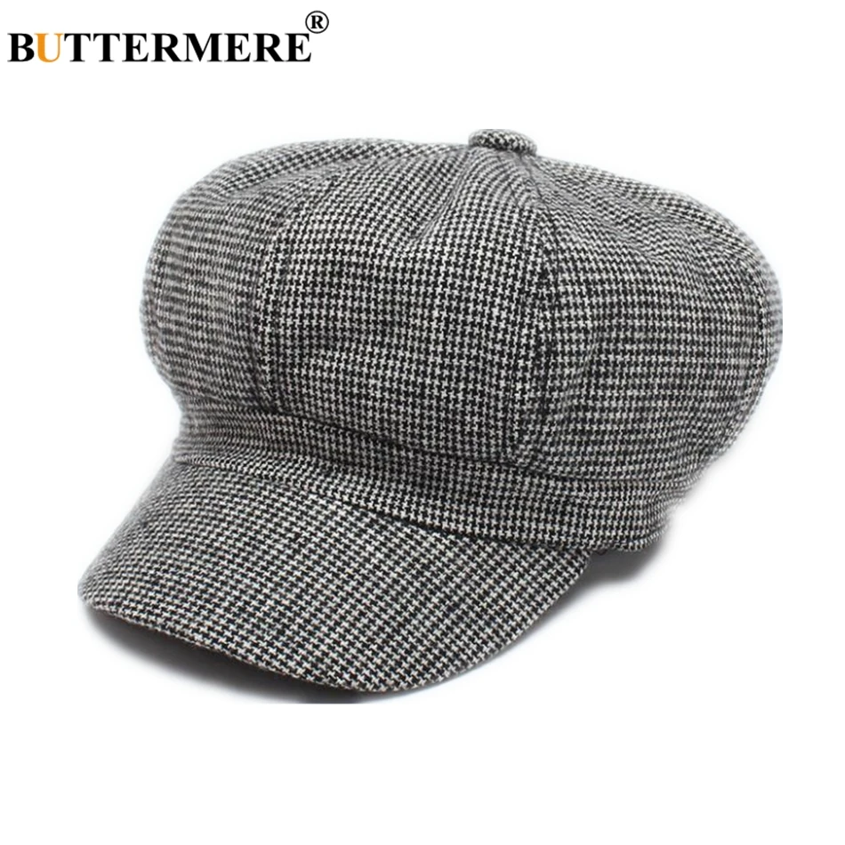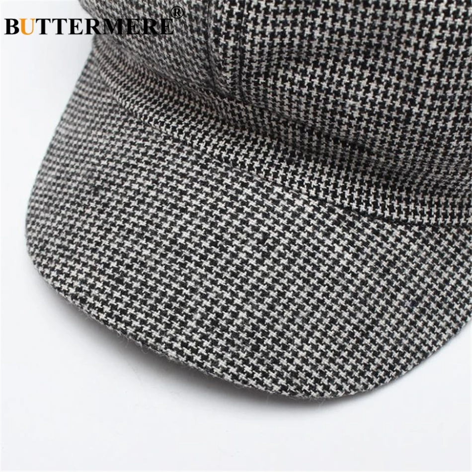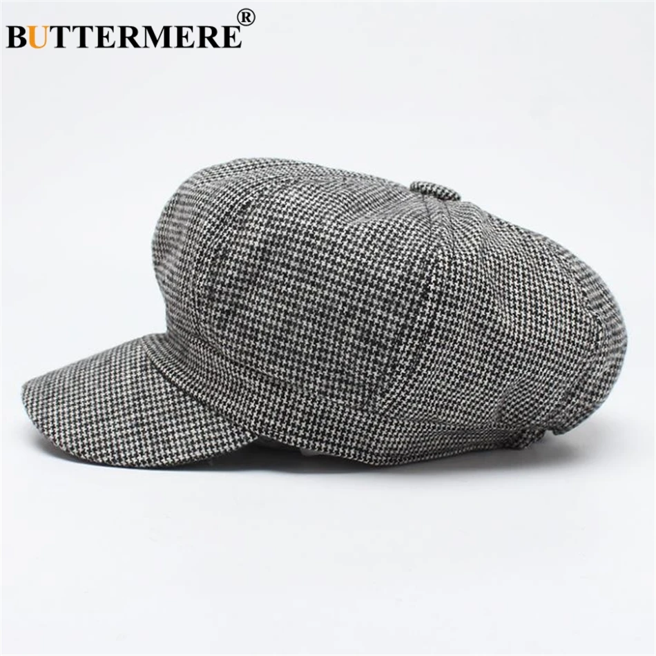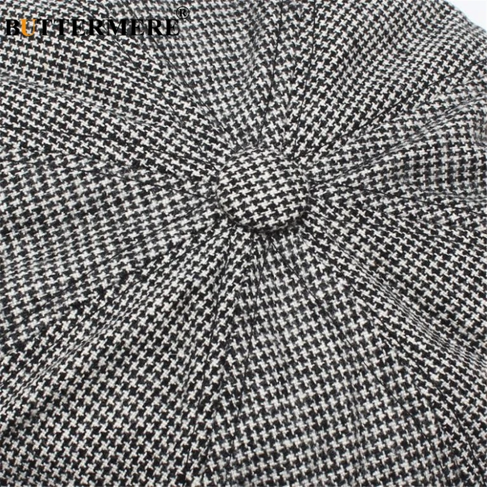buttermere女性八角キャップ女性キャスケットキャップ黒白千鳥女性ベレー帽ヴィンテージウール格子縞の画家帽子