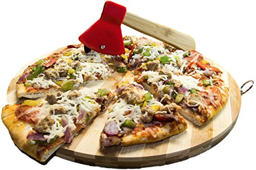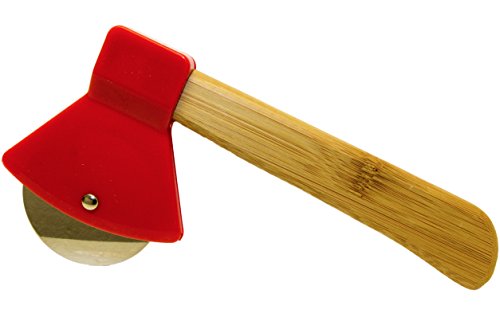 'THE AXE' PIZZA KNIFE: This pizza cutting knife is fun to use when slicing up pieces for the kids or party members. 'The Axe' has a round wheel blade for back and forth cutting motion and a wooden handle just like a real axe. This is a great gift idea for that pizza lover in the family.