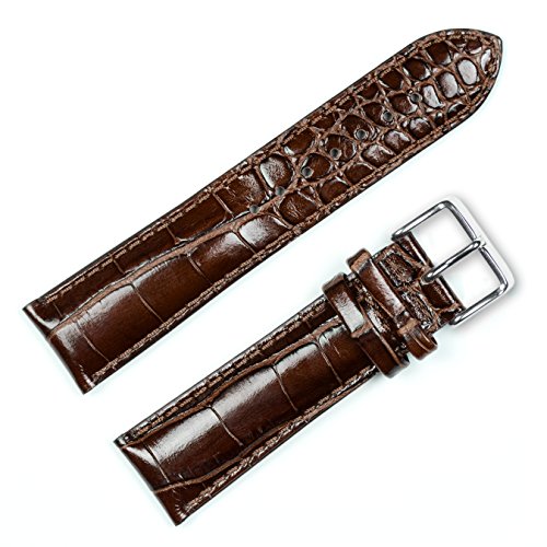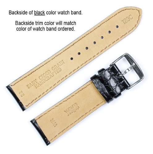 Studio : deBeer Publisher : deBeer Binding : Watch Product Description From the deBeer Europa collection, this fine Italian Calfskin watch strap has a beautiful Crocodile Grain embossing, which provides the elegant look of authentic crocodile, without the expense. Soft, nubuck lining provides comfort and water resistance. Heavy padding. Semi-gloss. Length = 7.5 for mens sizes (16mm 28mm) and 6.75 for womens sizes (12mm 14mm). e-mail for if you have a choice for the buckle color choice (info@debeerwatchbands.com) - reference your order number. NOTE: The width of the watchband in the picture shown may be wider or narrower than the size you are actually ordering. We use this size picture of the band to show the detail of the skin.