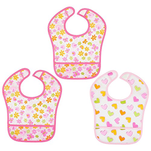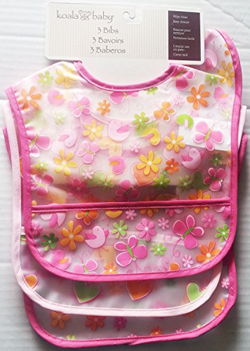 KOALA BABY 3 PACK EZ-WIPE LARGE FEEDER HEART/FLOWER BIBS