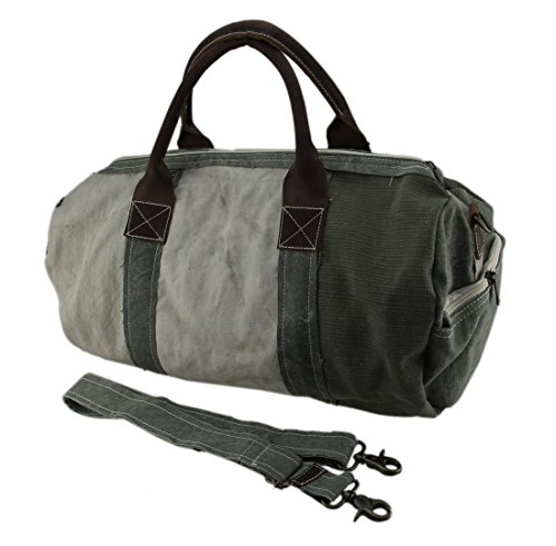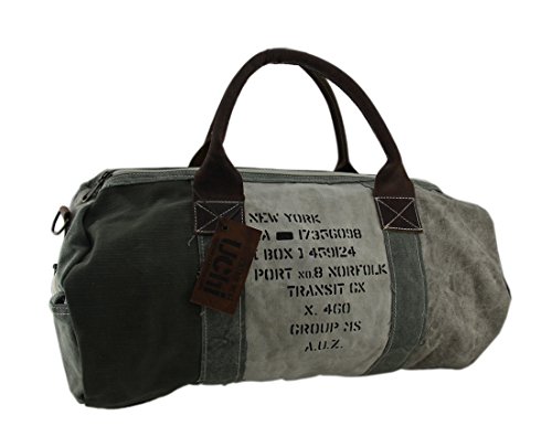 Studio : Zeckos Publisher : Zeckos Binding : Apparel Product Description When we carry our things around, we want to look good doing it, and this duffle gives you a place to tote your things in cool vintage military style. The inside is roomy enough for all your gym stuff, laundry, weekend trips and so much more. The zip pocket on one end and 3 pocket pouch inside help keep smaller items handy and organized. The leather handles are rolled for comfort, and it includes a removable carry strap that gives you an adjustable 15-28 inch drop and multiple ways to carry it. The heavy duty cotton canvas construction is vintage-washed for a comfortable worn-in feel, kind of like your favorite pair of old jeans. The rustic nature of the 19 inch long, 10 inch deep, 10 inch wide bag is just a part of its stylish vintage charm. 0