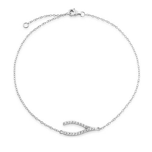 Make a chic style statement every time you wear a new CZ lucky wishbone anklet. With the hope of finding good fortune and enjoying some good luck, our sterling silver lucky wishbone ankle bracelet will start off your day lucky. Made on a dainty rolo chain and adorned with clear, shimmering CZs for the perfect hint of glam, our lucky jewelry has a look we are sure you will find irresistible. Our rhodium plated sterling silver CZ wishbone anklet measures 9 inches in length and secures with a lobster claw clasp. It boasts a one inch extender, making our adjustable sterling silver ankle bracelet a perfect choice for women of all ankle sizes. A super cute choice for everyday wear, our CZ wishbone anklet is an adorable way to dress up your ankle in time for the warmer days of spring and summer ahead.Feature