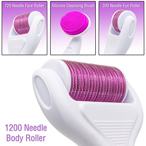 EASY TO USE - This Derma Roller has three interchangeable roller heads and handle. It is easy to use on your face, body, and around the eye area. (Please avoid eyelid use)