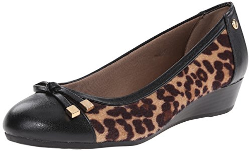 Features a decorative bow with metal caps at vamp. Convenient slip-on construction. Soft textile lining and fully padded footbed keep feet happy and cozy. SoftSystem® comfort elements offer all-day comfort. Modest wedge. Traction rubber outsole.