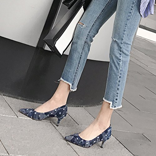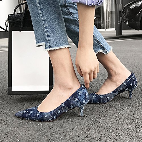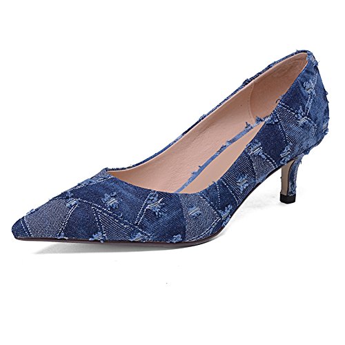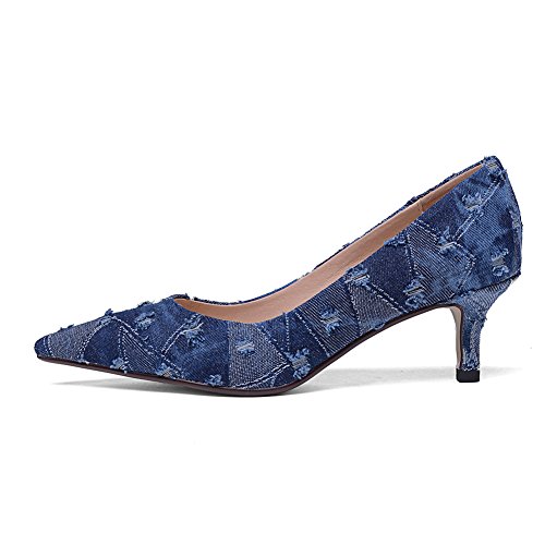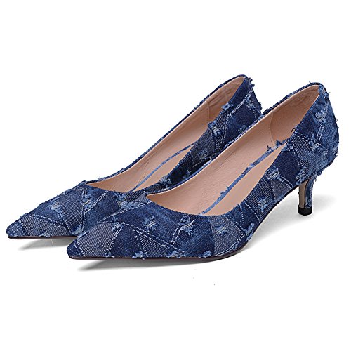 (VASHOP)/Women's/Pumps/DIRECT FROM USA/VASHOP Women's Jeans Pointy Toe Stiletto Middle Heels Slip-On Shoes