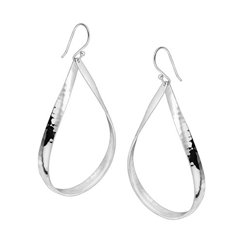 These Do the Twist earrings boast teardrop-shaped, hammered sterling silver as the body of these hollow earrings. Earrings measure 2 1/2 by 1 1/2 inches, finished with French-wire back-findings. Piece comes with a ".925" sterling silver stamp as a symbol of guaranteed product quality.