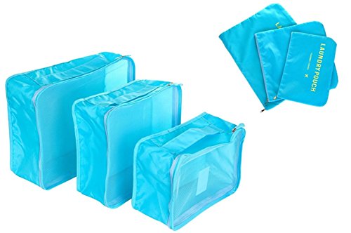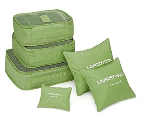 Product Description Product Name: Nylon Packing Cube Travel Bag System Durable One Set 6 Pieces Unisex Clothing Sorting Organizer Bag Category: Stuff Sacks Small laundry pouch-6.3 inch * 10.2 inch Medium laundry pouch-9.4 inch * 10.6 inch Large laundry pouch-10.6 inch * 13.8 inch Small packing cube-4.7 inch * 8.7 inch * 12.6 inch Medium packing cube-4.7 inch * 11.8 inch * 12.6 inch Large packing cube-5.5 inch * 12.6 inch * 16.1 inch 0