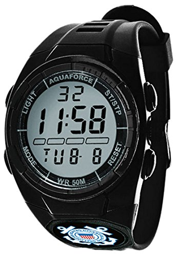 -. Binding : Sports -. Brand : Aqua Force -. EAN : 0815001012675 -. Feature : Stainless Steel Metal Back / 45mm Face with Illuminating Light / Polyurethane Rubber Strap / Water Resistant up to 50 Meters / U.S. Coast Guard Insignia -. Label : A.C. Kerman - Outdoor -. Manufacturer : A.C. Kerman - Outdoor -. Model : AF50T -. MPN : AF50T -. PackageQuantity : 1 -. PartNumber : AF50T -. ProductGroup : Sports -. ProductTypeName : SPORTING_GOODS -. Publisher : A.C. Kerman - Outdoor -. Studio : A.C. Kerman - Outdoor -. Title : Aqua Force Coast Guard Combat Multi Function Digital Watch with 43mm Face -. UPC : 815001012675