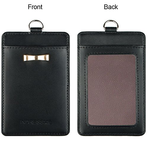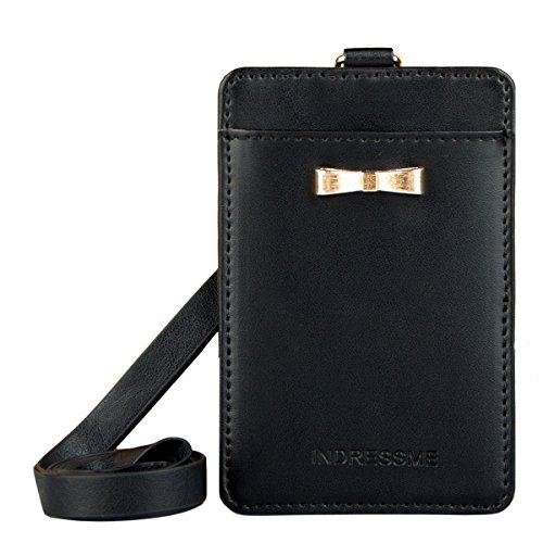 (INDRESSME)/Accessories/Wallets, Money Key Organizers/DIRECT FROM USA/Indressme Cute Black 2-sided Vertical Genuine Leather ID Badge Holder with Lanyard