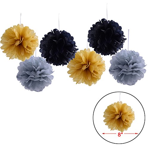 -. Title : CONGRATULATIONS Banner Sign For Graduation Party Supplies Decoration Kit,With Tissue Paper Pom Poms(Black Gold Gray)