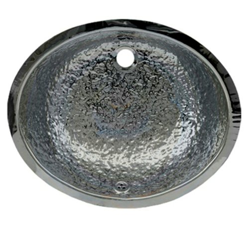 Whitehaus WH920ABB-POSS Oval 18 1/2-Inch Hammered Textured Undermount Basin with Overflow, Polished Stainless Steel
