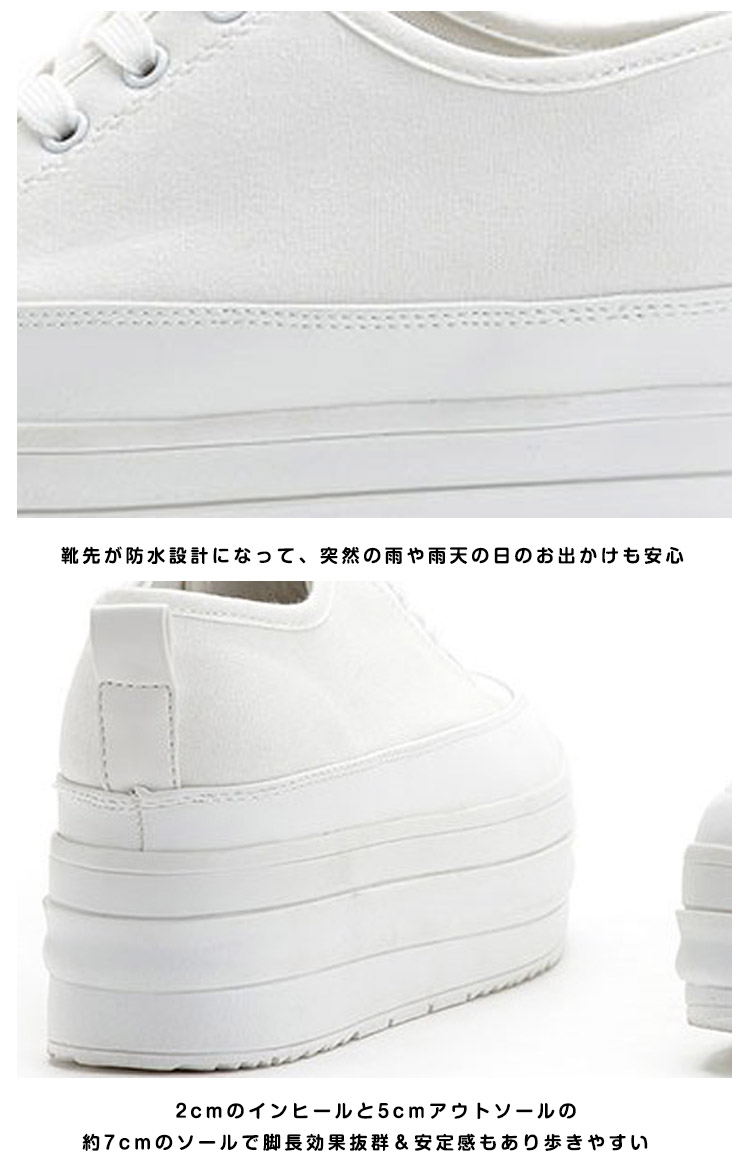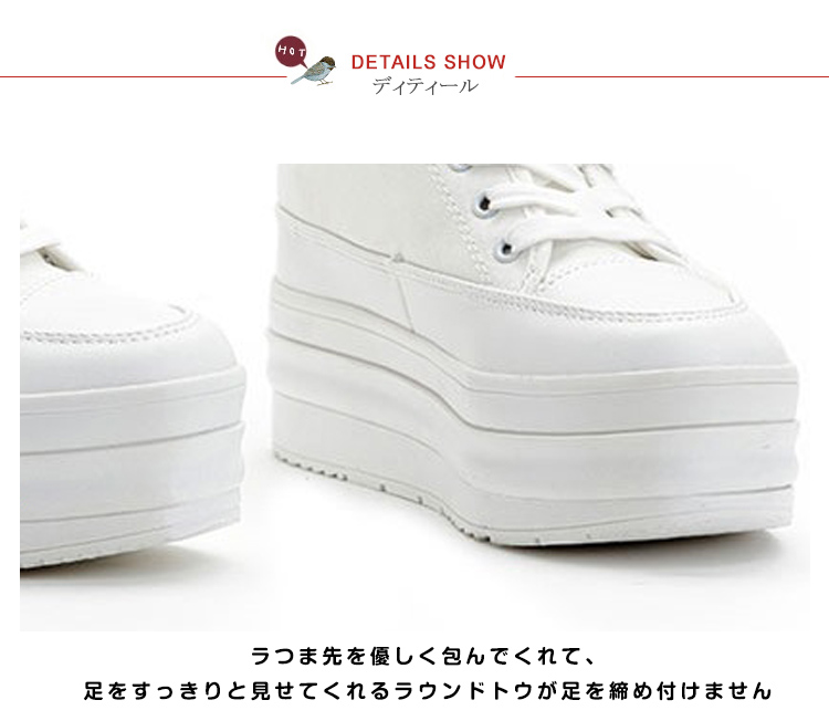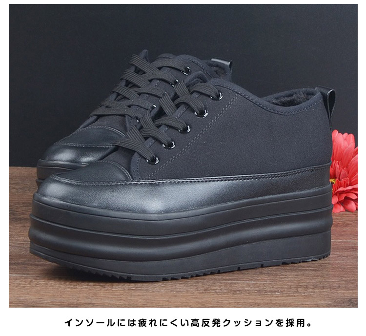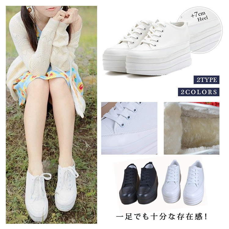 | 一足でも十分な存在感!美脚効果抜群な厚底スニーカーの登場です。約7cmのソールで脚長効果抜群&安定感もあり歩きやすい。インソールには疲れにくい高反発クッションを採用。滑り止めの凹凸加工を施した合成ゴム底は安全性が高くなります。秋冬にぴったりの裏起毛タイプも追加になって、どうぞ! | |