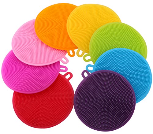 Katkitchen 8 Pieces Mix Color Multi-purpose Food-Grade Silicone Cleaning Dishwashing Brush Reusable Scouring Cloth Keyboard Cleaning (8PCS Mix Color of)