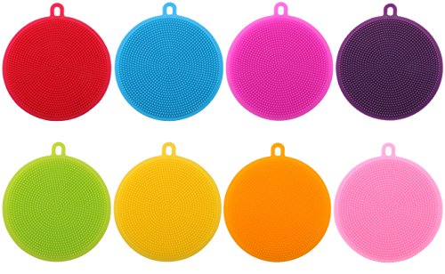 - 8 colors sponge,8pcs a pack,food-grade silicone material,safety and environmental protection,flexible and non-deformable.Double-intensive cleaning bristles,let stains nowhere to hide,can be repeated use of scouring pad,act as a heat-insulated glove