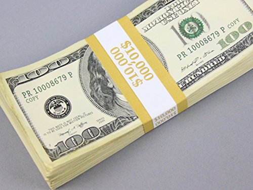 Studio : Prop Movie Money Publisher : Prop Movie Money Binding : Toy Product Description PROPMOVIEMONEY's designed $100 Full Print production prop money stack with 100 color double sided prop bills and current removable bank strap. Each designed prop money bill is labeled "COPY", "FOR MOTION PICTURE USE ONLY" and "NOT LEGAL TENDER". WARNING: AGED and STAINED stacks will look used, appear wet, worn and may have tears on them. Stains and color patterns will be different on all aged stacks. DO NOT BUY THESE IF YOU ARE LOOKING FOR CLEAN CRISP MONEY PROPS. All of our money are props created, designed and copyrighted by Production Props Media Designs LLC associated with PROPMOVIEMONEY the #1 prop money company in USA. Professionally supplying money props to Hollywood Studios, TV and Independent film studios worldwide. Don't settle for cheesy prop money. Trust the pros, your production deserves the best money props! **WARNING: OUR PROP MONEY IS SOLELY DESIGNED FOR TV, FILM, PHOTOGRAPHY, TRAINING AND MEDIA PRODUCTIONS. IT WILL NOT PASS AS REAL CURRENCY AND CANNOT BE MODIFIED TO LOOK EXACTLY LIKE REAL CURRENCY. IT IS A CRIMINAL AND FEDERAL OFFENSE TO ATTEMPT TO USE ANY KIND OF MEDIA MONEY PROPS TO MAKE A PURCHASE. YOU WILL BE ARRESTED AND PROSECUTED IF MONEY PROPS ARE USED IN ANY MANER OTHER THAN MEDIA PRODUCTION, MEDIA MARKETING, PROMOTIONS, TRAINING OR ADVERTISING. 0