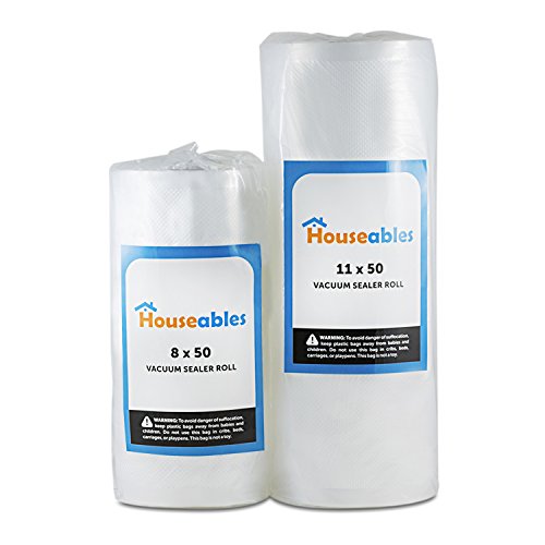 Vacuum Sealer Rolls, Sous Vide Food Bags, Two (2), Large 11" x 50' & 8" x 50' Combo, Commercial Grade Plastic, Food Vac Storage & Heat Seal, Vacuumsealer Saver, Microwave & Freezer Safe, Store A Meal