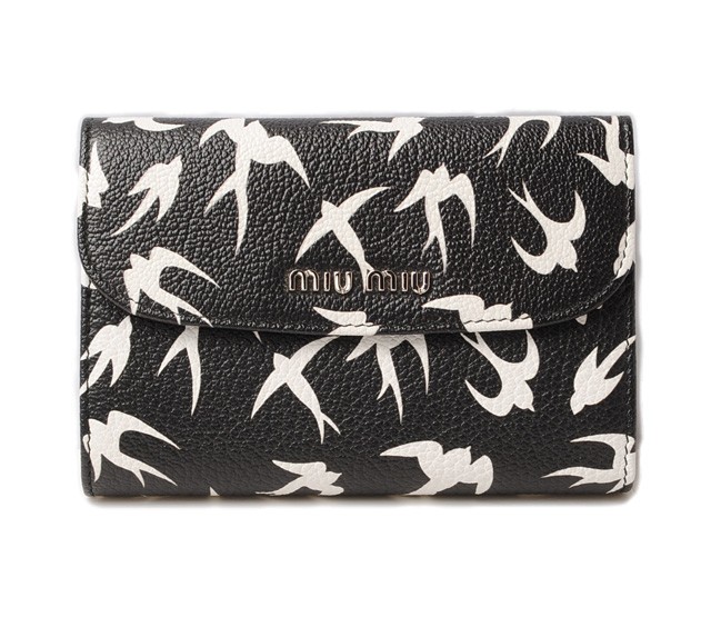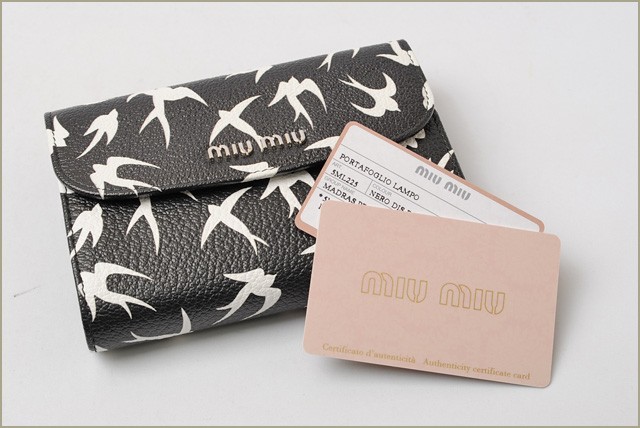 クリスマスプレゼントミュウミュウ 財布miumiu 3折財布 5ML225 MADRAS/マドラスレザー NERO DIS.RON/ブラックミュウミュウより、人気の折財布です。ミュウミュウより、人気の高いマドラスシリーズです。鳥のモチーフがアクセントに!山羊革の型押しレザーで、高級感の漂う、しなやかな肌触り。2層に別れた大きめのコインケースは、小銭が多くなりがちな方にもおすすめです。お買い物時にも、ポケットお札、レシートやチケットなど、区分けしやすいデザインです。商品番号 miu-16-108 サイズ 約:W14×H9.5×D3 (cm) 素材 MADRAS PRINT/マドラス プリント カラー NERO DIS.RON/ブラック 参考定価 -付属品 箱、ギャランティーカード(直営店印あり) 特徴 【 外側 】○スナップ式開閉部○L字ファスナー式ポケット/2層【 内側 】○札入れ×1○カードポケット×10○オープンポケット×4商品状態 程度 :ランクN○新品、未使用品。