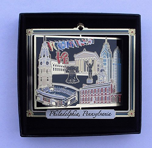 Philadelphia Collage Brass Ornament Black Leatherette Gift Box