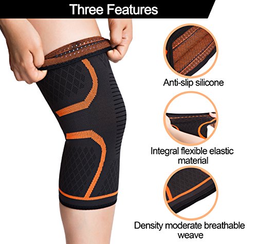 -. Feature : RELIEF KNEE PAIN & PROTECT YOUR JOINT--Do you still feel uncomfortable on your knee? Are you tired of the knee soreness after excise? Try this compression knee sleeve.It will not only reduces inflammation and swelling but also alleviates soreness and stiffness. And NO-SLIPPING SILICONE will keep them in place so that it will protect your joint all day. / SUPPORT FOR YOUR SPORTS--Graduated compression improves blood flow and reduces blood lactates. And it Lessen the stress on the knee caps,increase the strength of the knee. What you should is to enjoy the sports. / HIGH GRADE QUALITY & NO-SLIPPING--Made of 55% nylon & 35% rubber string &10% Spandex with special breathable structure.It's ultra durable, breathable, washable, antibacterial, moisture wicking.Unique Silicone on the top of knee sleeve will keep them in place all day. / RECOMMENDED FOR-- Walking, hiking, jogging, running, workout, cross training, running, cycling, gym, tennis, dancing, basketball and other exercises. And any indoors or outdoors activity that put stress on your knees. / GAURANTEE FOR LIFE--A 30-Day No Questions Asked - Money Back Guarantee. If You Don't Like it - FOR WHATEVER REASON - We'll Back Your Money.You will have a no risk shopping!