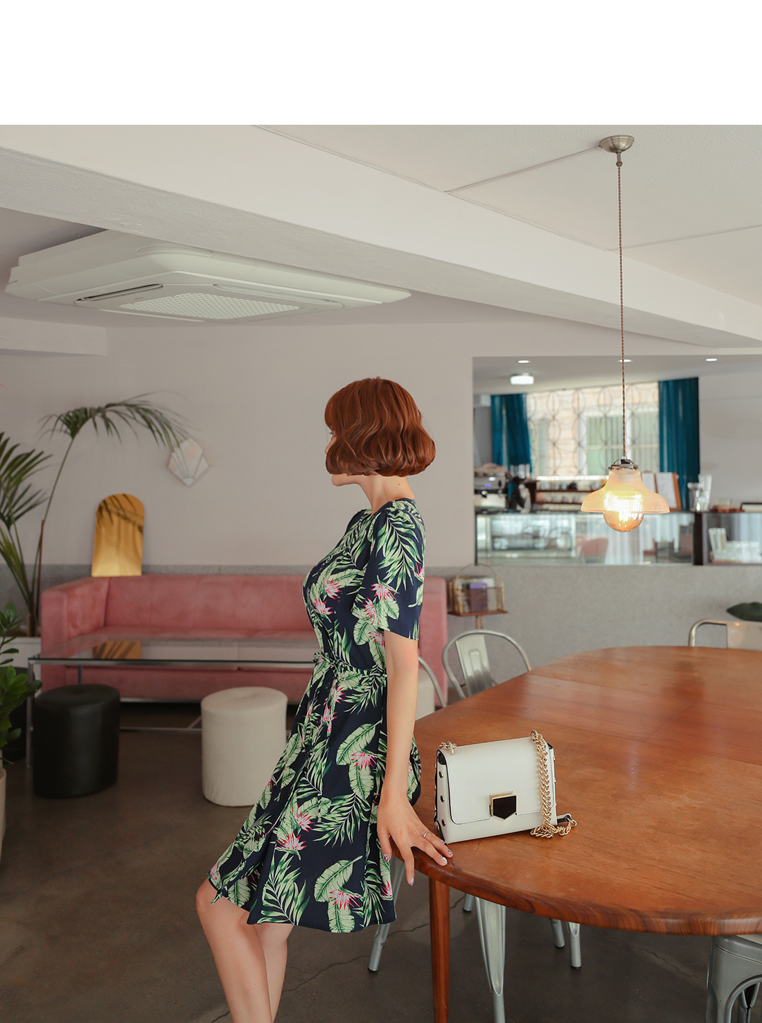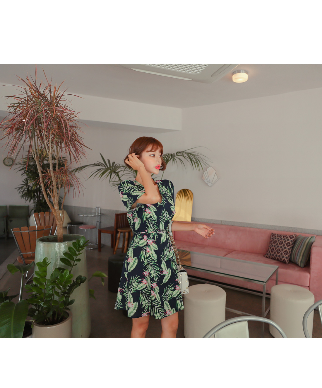 MD COMMENT 유니크한 분위기를 한껏 더해 줄 나염 원피스 소개할게요.자연스럽게 내려오는 브이네크라인으로 답답함을 덜어 주며적당히 여유있는 핏감으로 편안하게 즐기기 좋아요.허벅지까지 오는 살짝 숏한 기장감으로 한층 길어 보이는 레그라인을 연출해준답니다!전체적으로 화사한 나뭇입 패턴이 룩에 포인트를 더해주며에스닉한 느낌으로 휴양지에서 함께하기좋아요^^사이드 랩으로 감싸며 떨어지는 디자인으로 단추로 클로징을 도와드려 간편하며주었으며 손쉬운 탈, 착용을 도와주었어요.안쪽으로 사이드 단추로 이중으로 여밈처리 되어 노출걱정없어요.허리양쪽에 끈으로 리본으로 묶어 라인을 한번더 잡아드려 날씬하게 연출해드리구요,허리 밑으로 자연스럽게 퍼지는 A라인 느낌으로 발랄한 분위기를 연출해 주었답니다!가벼운 소재감으로 지금부터 S/S시즌 딱 즐기기 좋으며데일리룩이나 데이트룩에 러블리한 무드를 연출해 줄 원피스 아이템으로 추천해요!COLOR/SIZE 베이지,네이비FREEMODEL FITTING 베이지/FREE