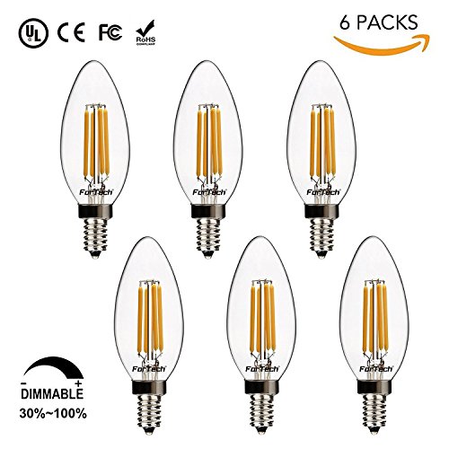 Classic Candelabra Light Bulb, E12 LED Bulb, ForTech Dimmable 5W / 2700K Warm/ Equivalent 50W/ White 500 Lumen Decorative Candle Light (6 Packs)