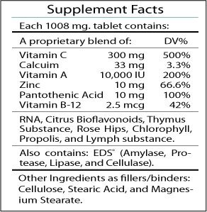 -. Feature : ProP.R.Ietary Immune Support Formula / Helping Support the Body's Immune Response / Citrus Bioflavonoids, Vitamin A, Zinc, Rose Hips, Chlorophyll, Propolis, B-5, B-12