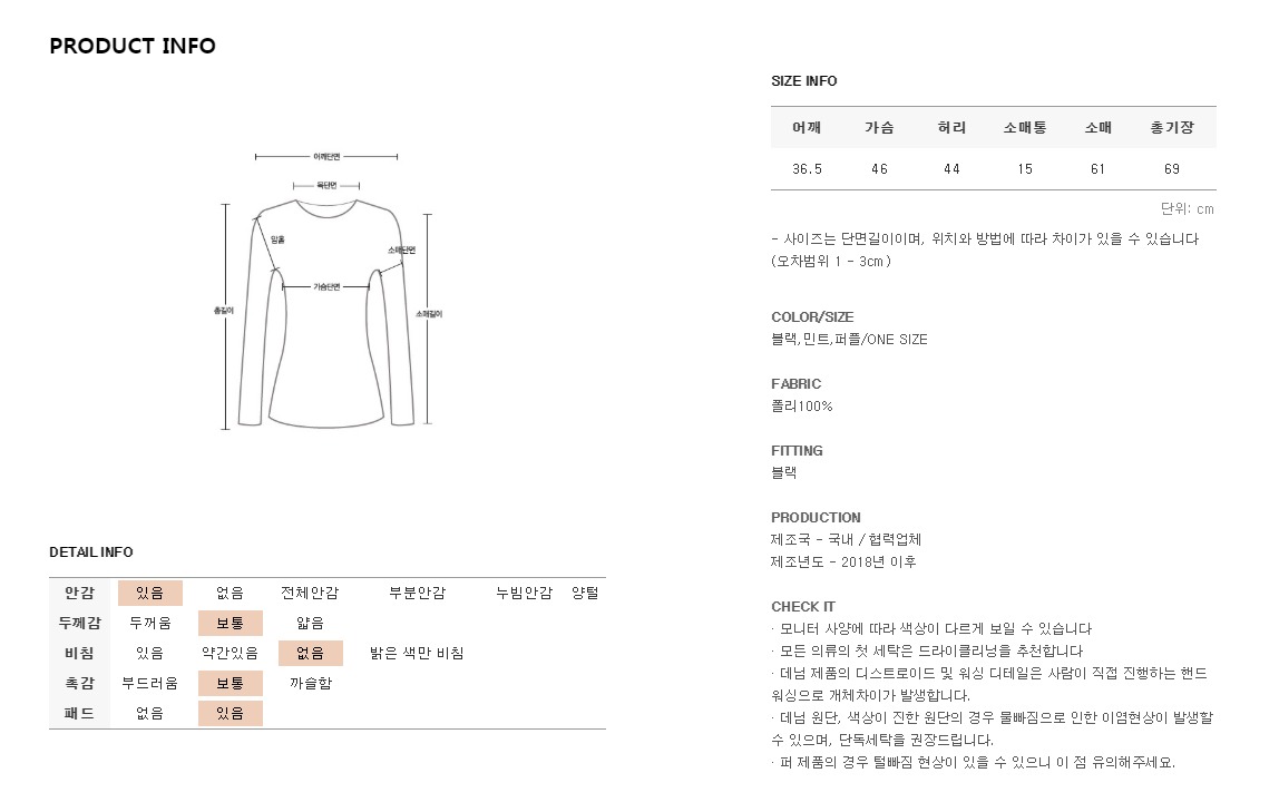 *모든 의류의 첫세탁은 드라이크리닝을 권장해드립니다*