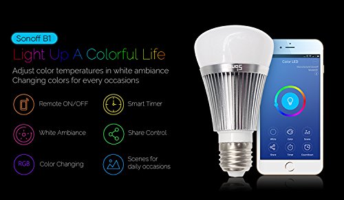 Sonoff B1 Wi-Fi Smart LED Household Light Bulbs wifi Light Lamp E27 Dimmable Magic Color Light Changing , Wireless Remote Control Daylight and Wifi Light from Anywhere on Your Phone