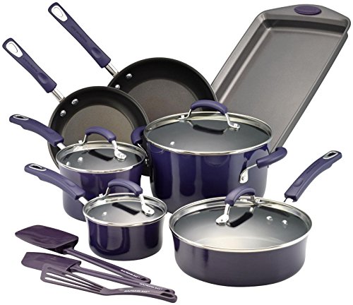 -. Title : Rachael Ray 14-pc. Hard Porcelain Enamel Nonstick Purple Cookware Set